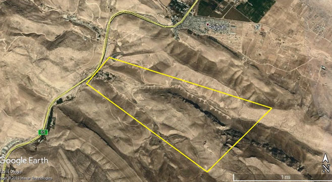 Image satellite de la base est de Cheshmeh Bidi dans le nord de Shiraz, Iran