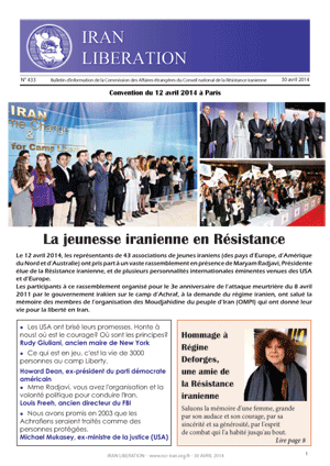 CNRI – Le 12 avril 2014, les représentants de 43 associations de jeunes iraniens (des pays d’Europe, d’Amérique du Nord et d’Australie) ont pris part à un vaste rassemblement en présence de Maryam Radjavi, Présidente élue de la Résistance iranienne, et de plusieurs personnalités internationales éminentes venues des USA et d’Europe.