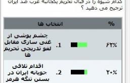 Pour répondre à cette question délicate, 63 % des 2000 participants se sont exprimés pour le renoncement à l’enrichissement d’uranium « si l’Occident acceptait de lever progressivement les sanctions ». Ceux qui préconisaient la fermeture du détroit d’Ormuz (par lequel transite 35 % du pétrole transporté par voie maritime dans le monde) ne représentaient que 19 % des sondés et les autres ont préféré choisir une simple « résistance contre l’embargo ».