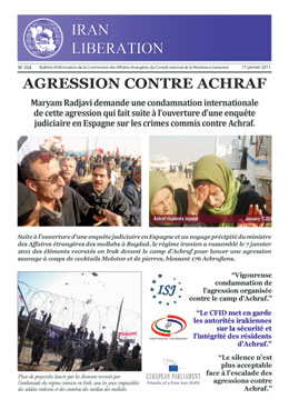 AccueilPublicationsPublications: Iran LibérationN° 354 : Agression contre Achraf Publications: Iran Libération N° 354 : Agression contre Achraf Par Staff Writer 18 janvier 2011 Facebook Twitter Pinterest LinkedIn Article précédentInterview de Me Juan Garcès sur l’ordonnance de la justice espagnole sur les crimes commis contre AchrafArticle suivantLe mari de l’avocate iranienne arrêté en Iran Articles relatifs Publications: Iran Libération Iran Libération : Des dizaines de milliers d’Iraniens manifestent à Berlin pour une république démocratique la rédaction - 5 avril 2026 Publications: Iran Libération Iran libération : L’union des générations dans la bataille pour la liberté en Iran la rédaction - 5 avril 2026 Publications: Iran Libération « Iran Libération » numéro 473 : Pour stopper le soulèvement, le régime doit en éteindre les deux forces motrices la rédaction - 16 janvier 2023