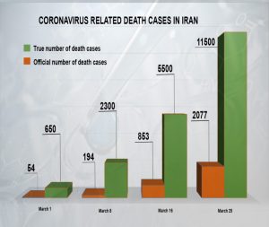 Au cours des trois dernières semaines, l’Organisation des Moudjahidine du Peuple d’Iran (OMPI) a fourni les derniers chiffres sur les décès dus au Coronavirus en Iran. Dans l’après-midi du 25 mars, le Coronavirus avait déjà tué plus de 11 500 personnes dans 222 villes iraniennes.