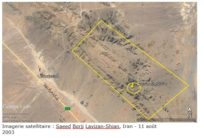 2. Le site faisait partie d’un projet géré par la principale entité chargée de la recherche et du développement des armes nucléaires, l’Organisation de l’innovation et de la recherche défensives (Sazman-e Pazhouheshhaye Novin-e Defa’i), connue sous son acronyme persan SPND). Dans les années 1990, cette entité était connue sous le nom d’AMAD.